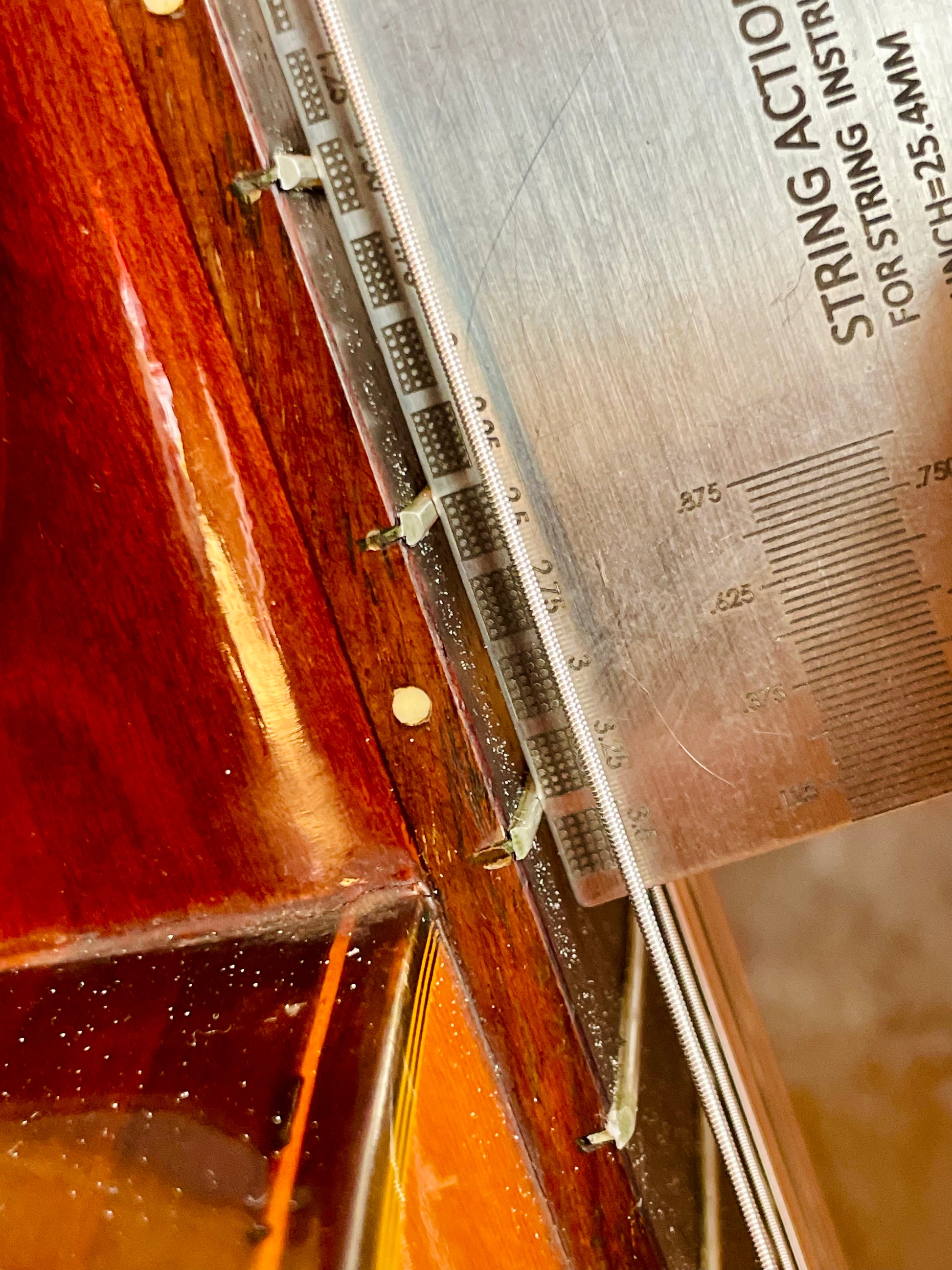 Playability is excellent. The action measures approximately 2.5 mm on the low E string, making it comfortable across the entire neck. The original tuning machines hold pitch perfectly. No buzz, no dead spots.