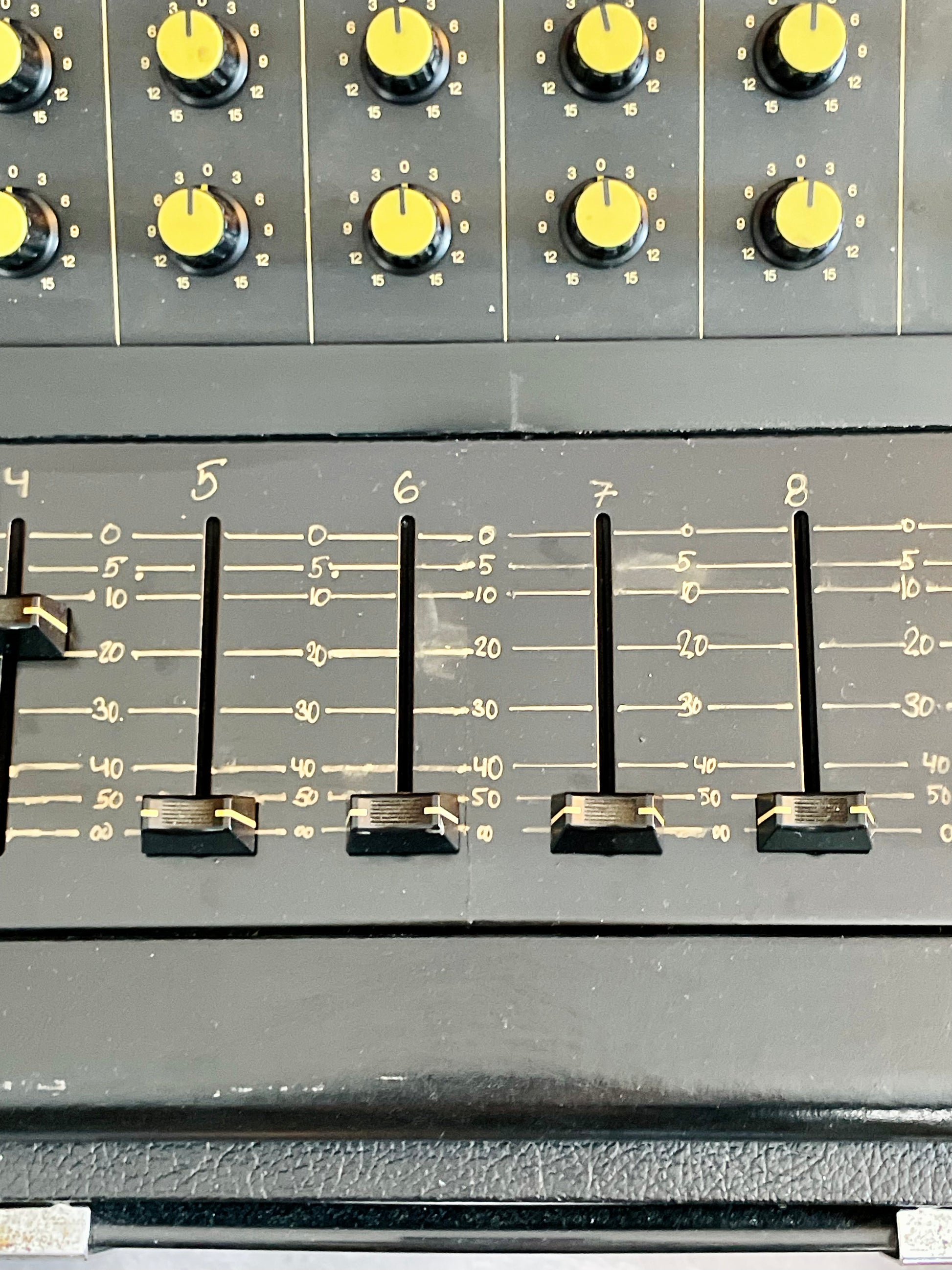 **As you might have noticed, I had to redo the entire plate on the faders board because of the amount of rust that was setting in. I have properly sanded it, painted + thick layer of protective lacquer. As you can see, arts and calligraphy are not my strong suit, but at least now the plate will not disintegrate in your channel's fader. Lines and indicators are a truthful representation of where the originals where.
