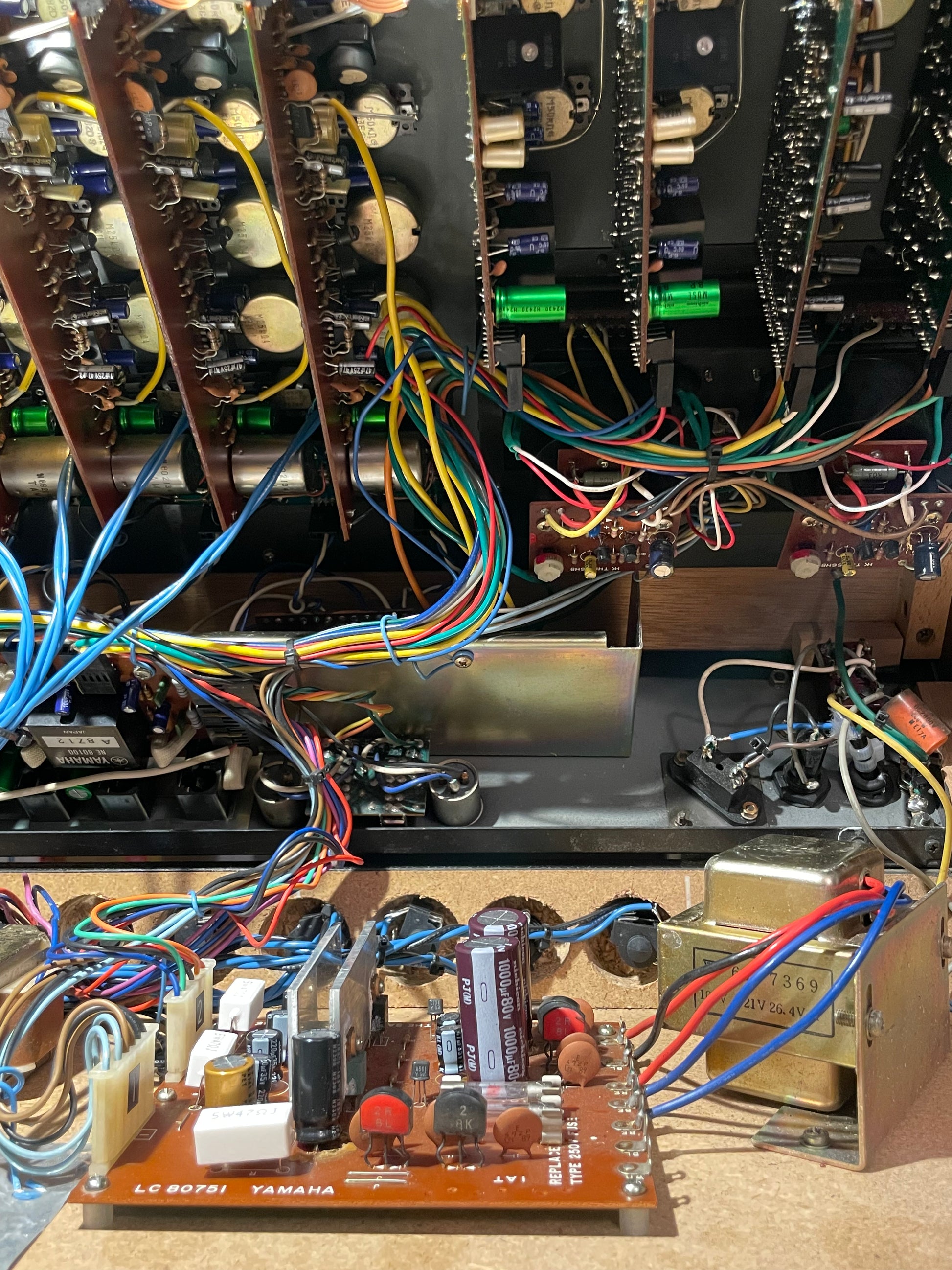 All electrolytic capacitors have been replaced using premium low-ESR Nichicon (Made in Japan), Nichicon Muse where circuit calls for Bipolar caps along with Panasonic where appropriate.