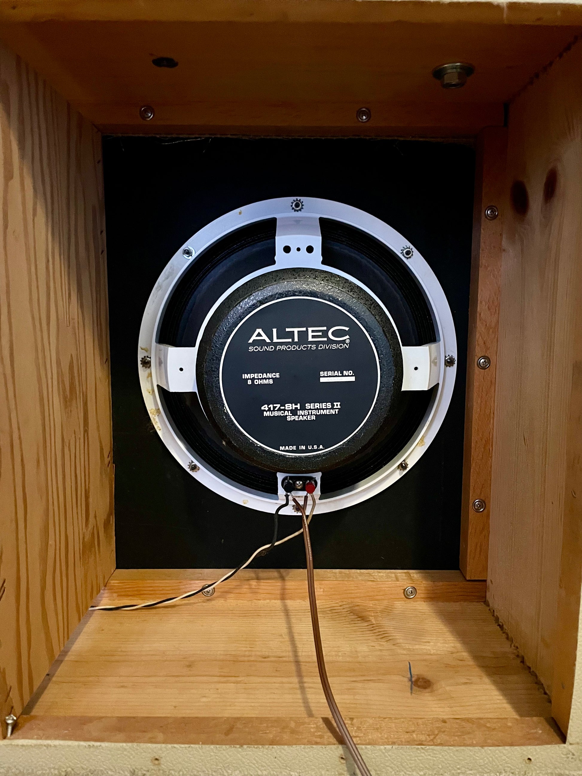 The Altec 417-8H Series II speakers are some of the most revered and sought-after speakers in the world of vintage guitar amplification. Known for their exceptional clarity, wide frequency response, and warm tonal character, these speakers offer a full-range sound that stands out even at high volumes. They are particularly favored for their ability to reproduce complex harmonics and dynamic range without harshness, which makes them ideal for the nuanced tones of the Bandmaster amp.