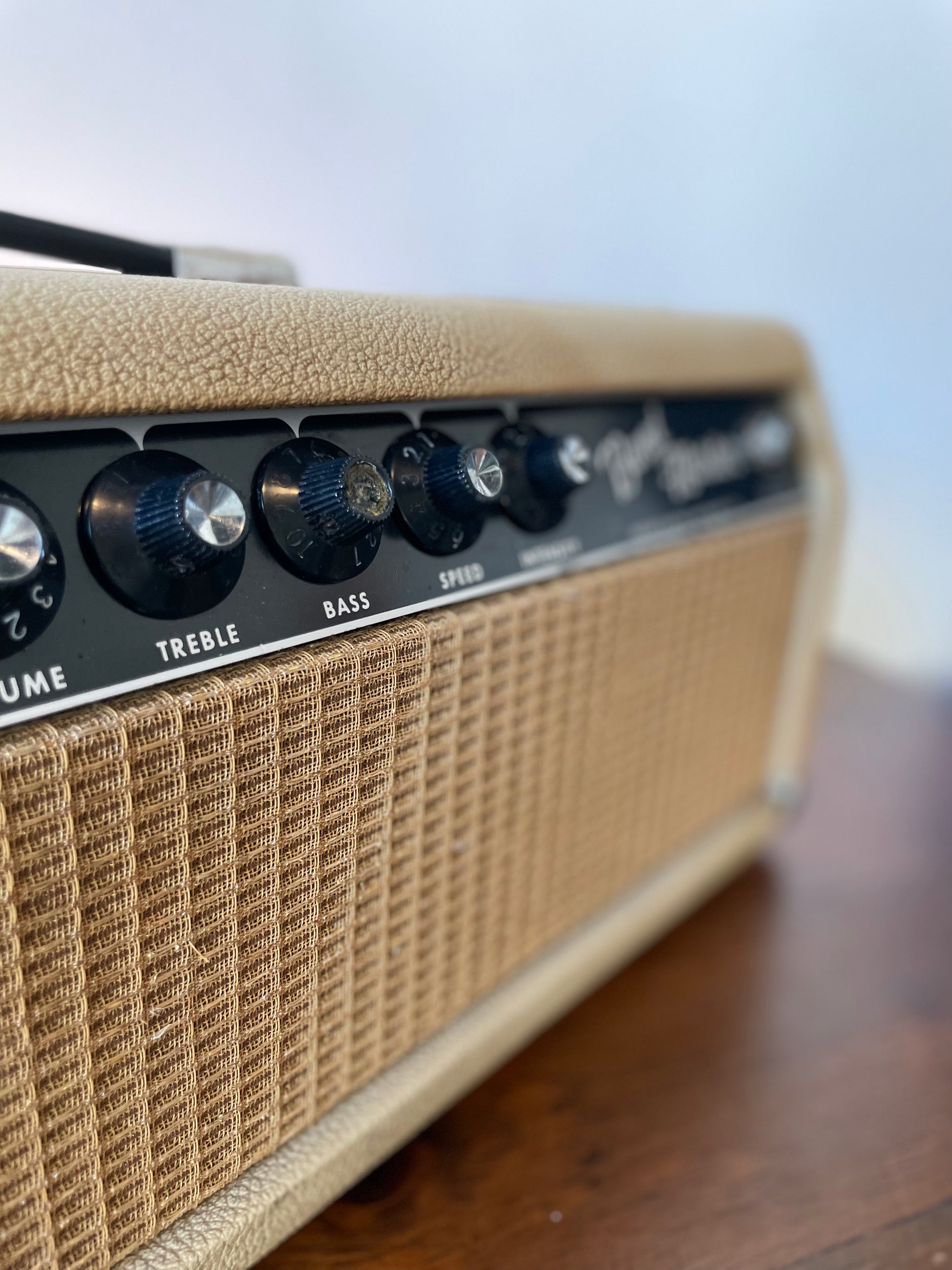 This 1964 model is part of the blackface era, which spanned from 1963 to 1967. The blackface amps are prized for their bright, crisp sound, which laid the foundation for many of the tones heard in classic rock and pop music of the era. The Bandmaster specifically gained a reputation for its ability to deliver both clean, shimmering tones and gritty overdrive when pushed, making it perfect for a wide range of musical styles.