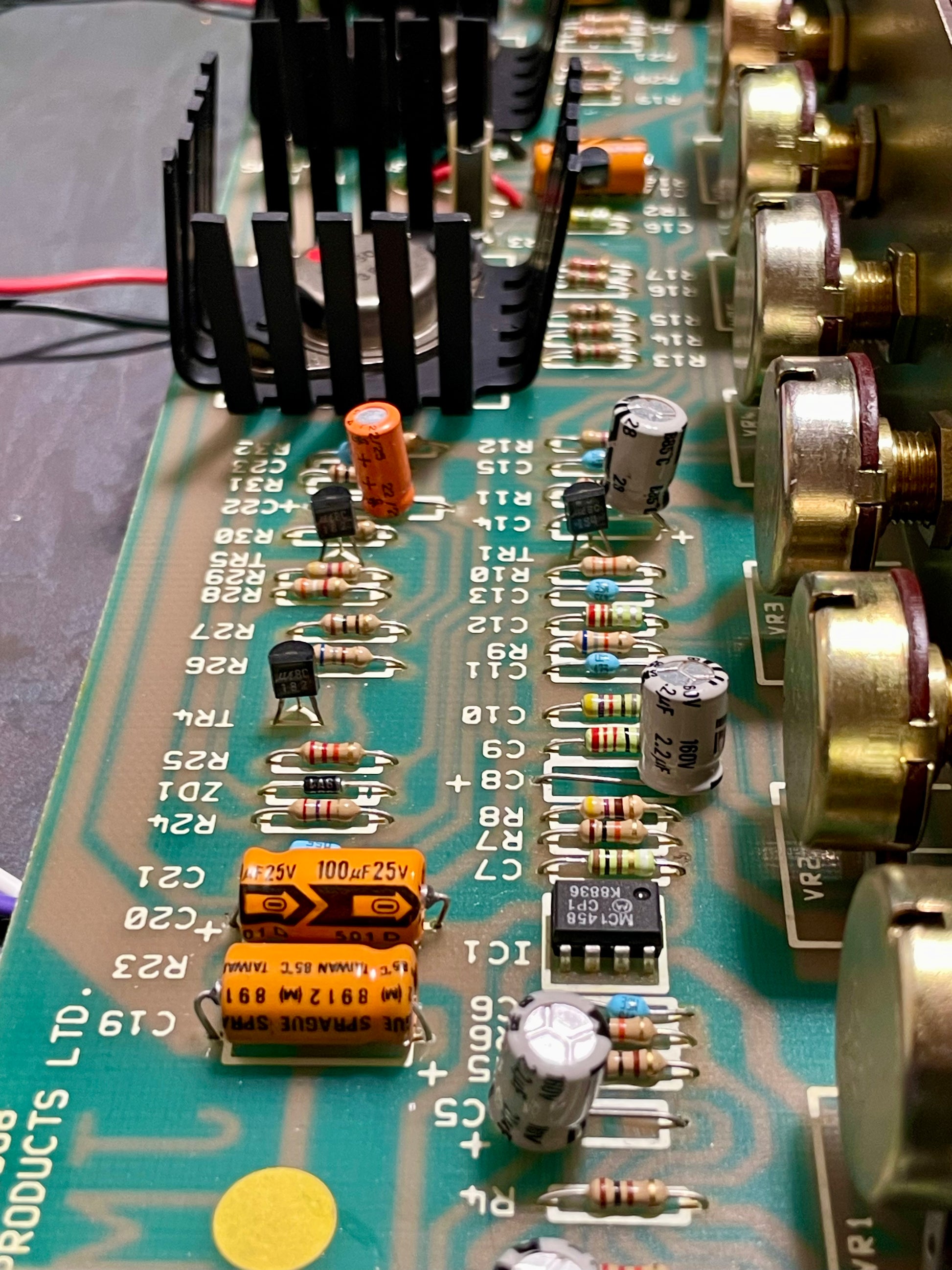 - The entire amplifier has been recapped with high-quality Sprague, IC, and Nichicon capacitors, ensuring reliability and tone for decades to come.