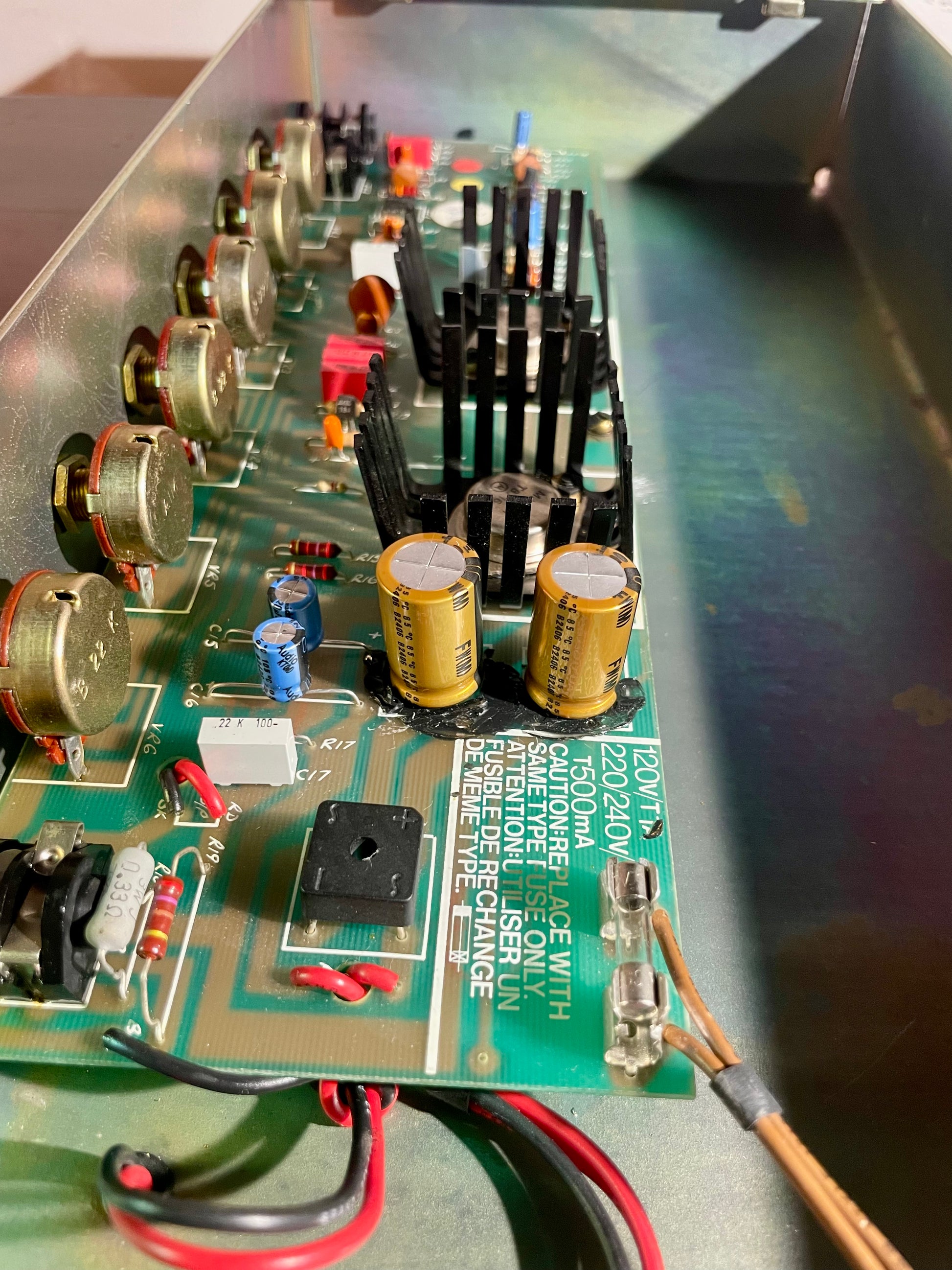 Fully serviced: Pots have been cleaned and all the caps have been preemptively replaced. Only with high quality Nichicon, low ESR capacitors (pictures). This amp is ready for many more decades of rock and won't be in need for a tech visit anytime soon.