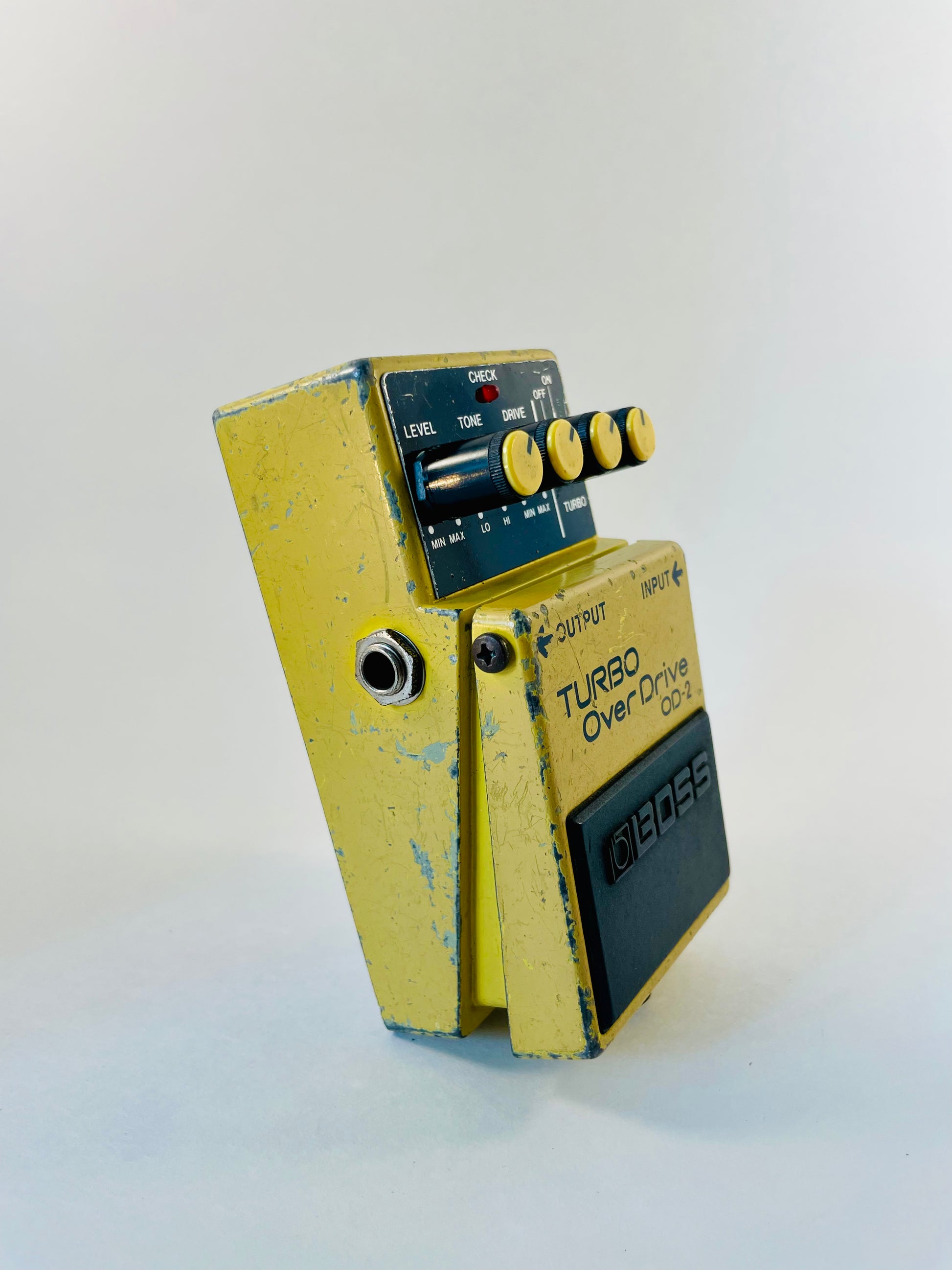 Building off the already legendary OD-1, the newer design offered two distinct modes. In Mode One the sound is similar to the original OD-1 with warm, vintage, tube-like overdrive tones, while in Turbo mode, even more gain is available, and a Tone control is included for sonic fine-tuning. The OD-2 is built using only discrete components (no integrated circuits).