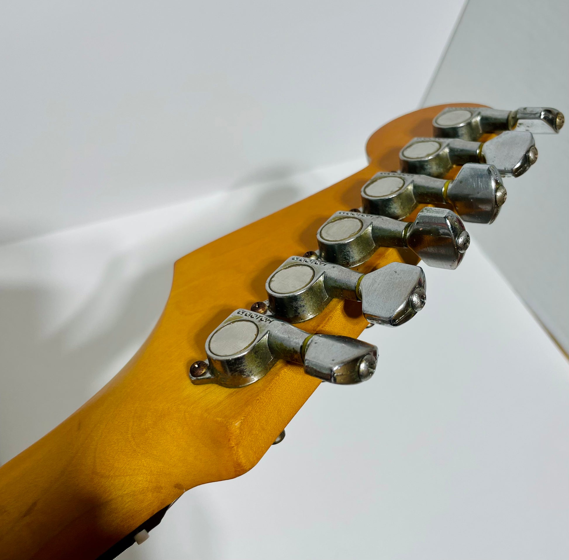 The guitar is in a good general condition, it has some chips and scratches consistent with an instrument that is 30+ years old and has been played. Some hardware pieces like the tuning keys, the whammy bar, the saddles and the pickups show signs of aging as well. The pick guard is a bit bent.