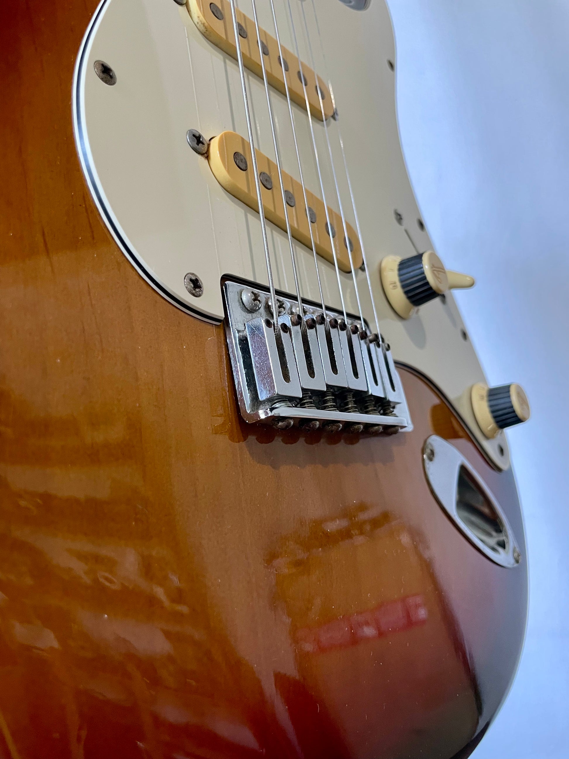 Made between 1988-1989 at the Fujigen factory, proudly wearing it's E serial number. A real gem in 3-Tone Sunburst!