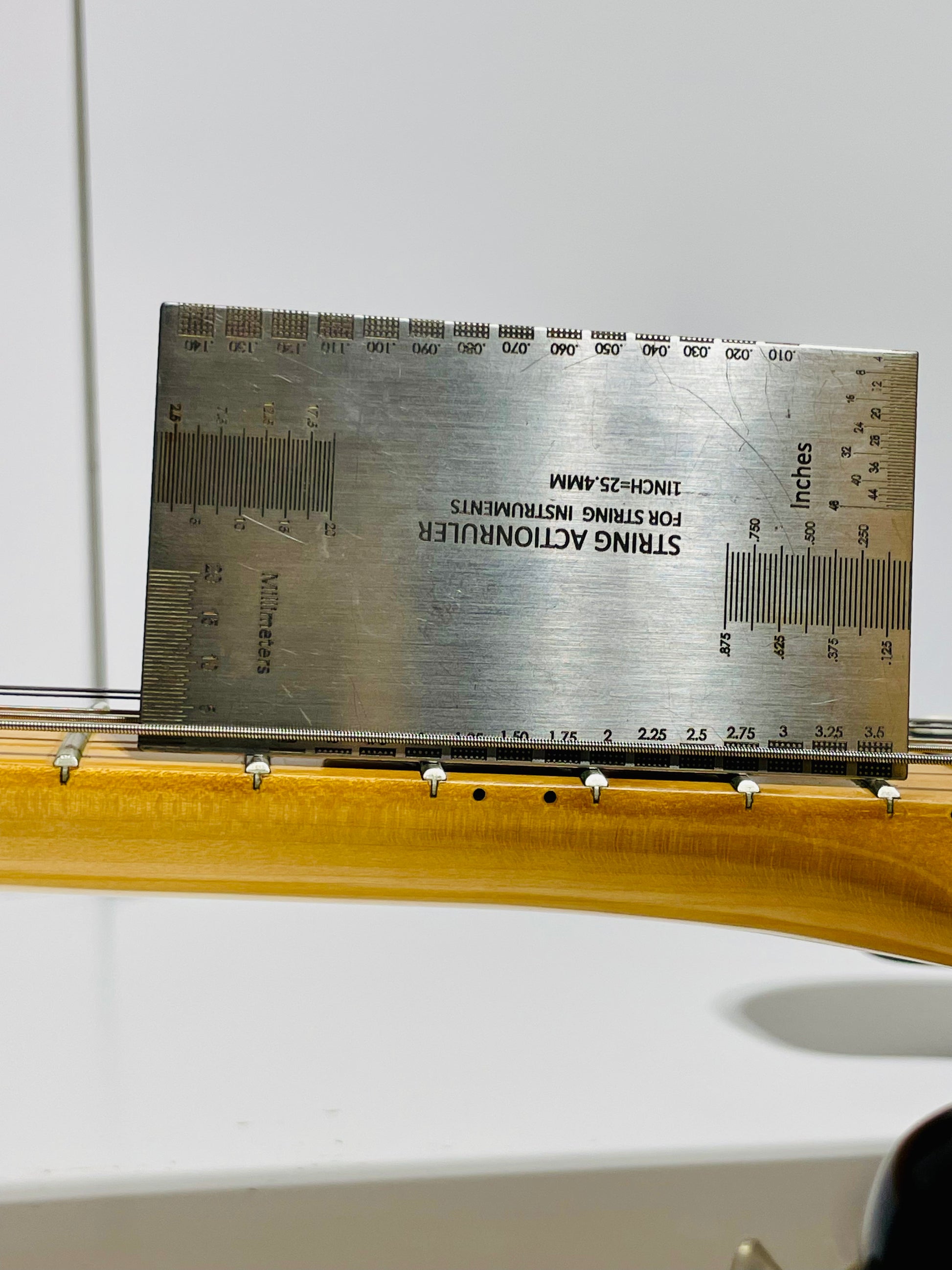 I did a full set up on it prior to putting it up for sale: Neck and action set up, low and comfortable at 1.5mm for the low E string. I have cleaned the pots and the pick up switch while taking pictures, I have also polished the frets and oiled the neck.