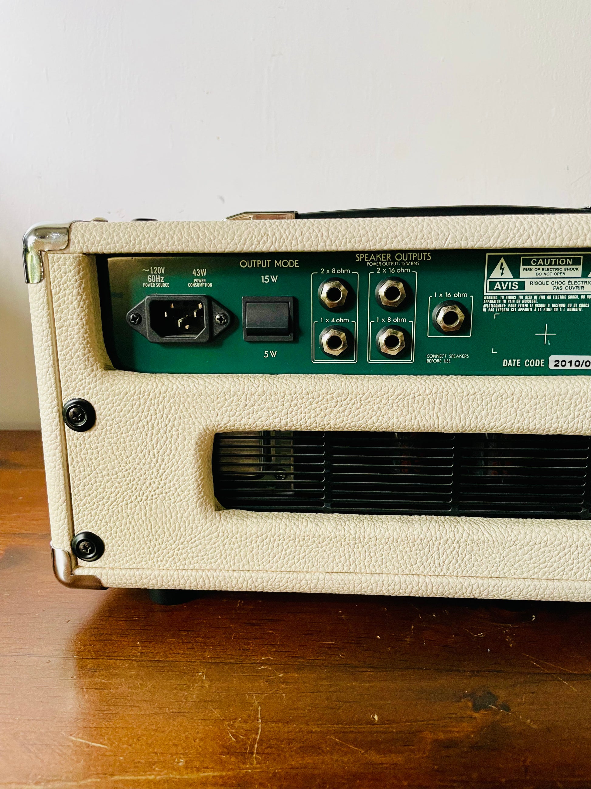 15-watt all-tube guitar amplifier head known for its clean headroom and built-in Tube Screamer circuit. It's praised for its warm, creamy clean tones, versatile speaker connections and effective use with pedals.