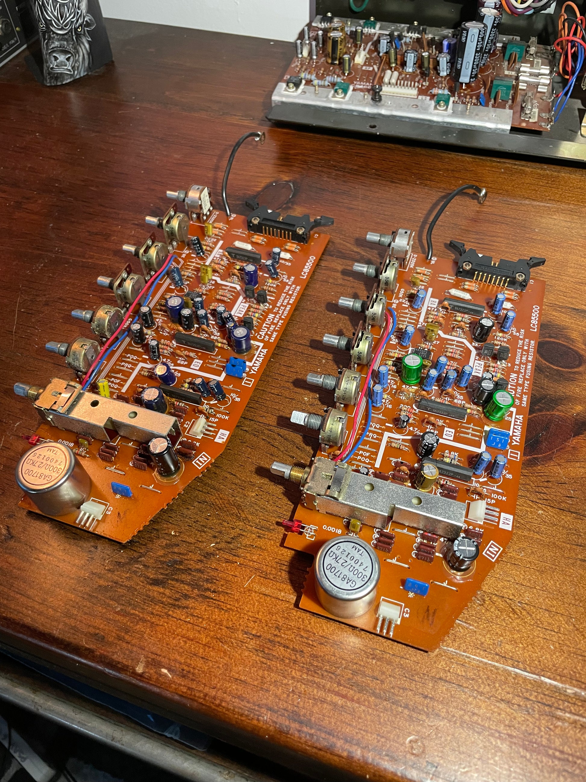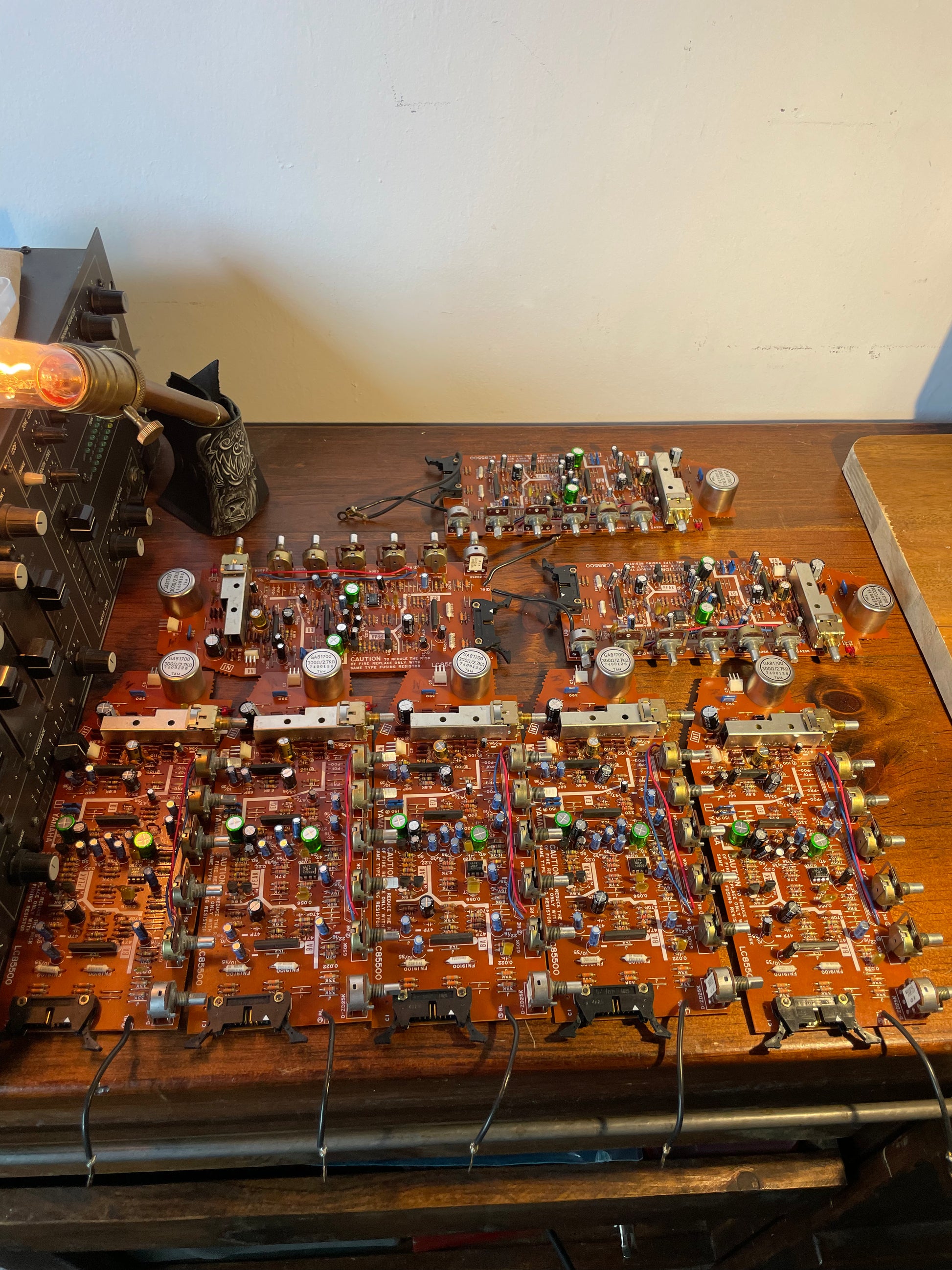 Everything inside this mixer is in perfect working order, every potentiometer and fader moves smoothly without noises and scratchy sounds. Every capacitor have been replaced with a high quality component from Nichicon (Original manufacturer - Made in Japan)