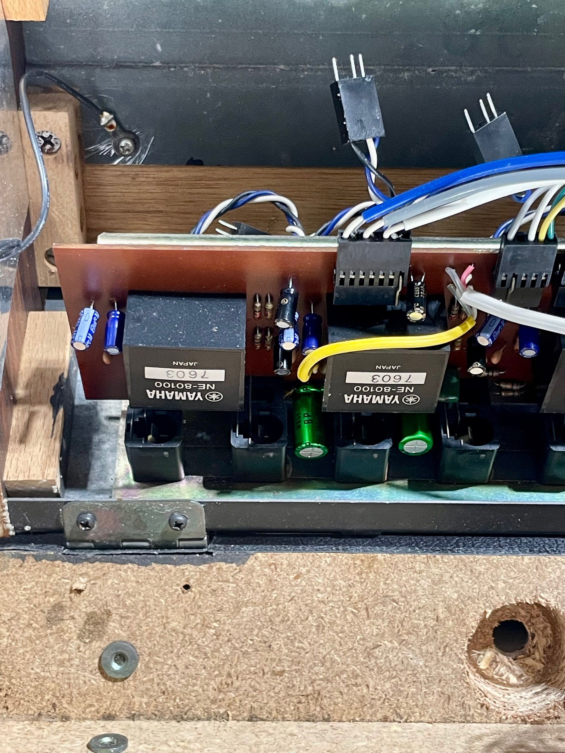 Inside, every capacitor has been replaced with premium low-ESR Nichicon parts (Made in Japan — the same brand Yamaha originally used in the late ’70s).