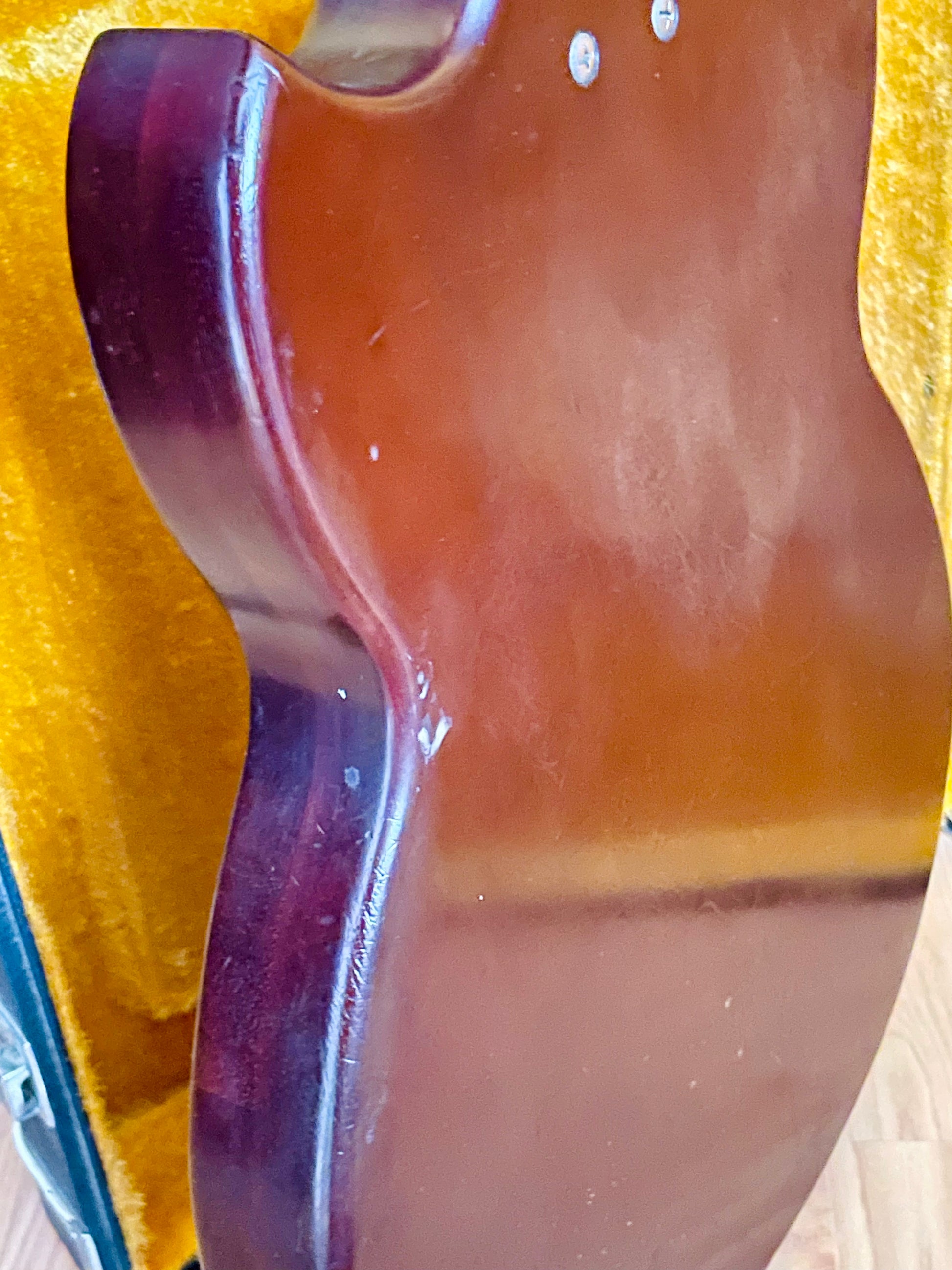 The pickguard was previously glued around the edges, and the screws have been repositioned as shown in the photos. It’s secure and functional, just not cosmetically perfect.
